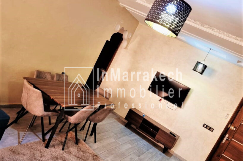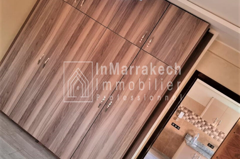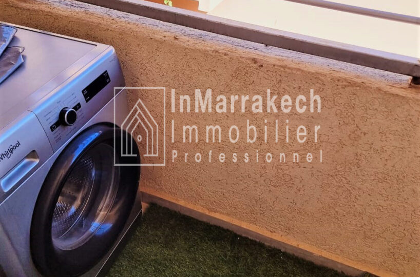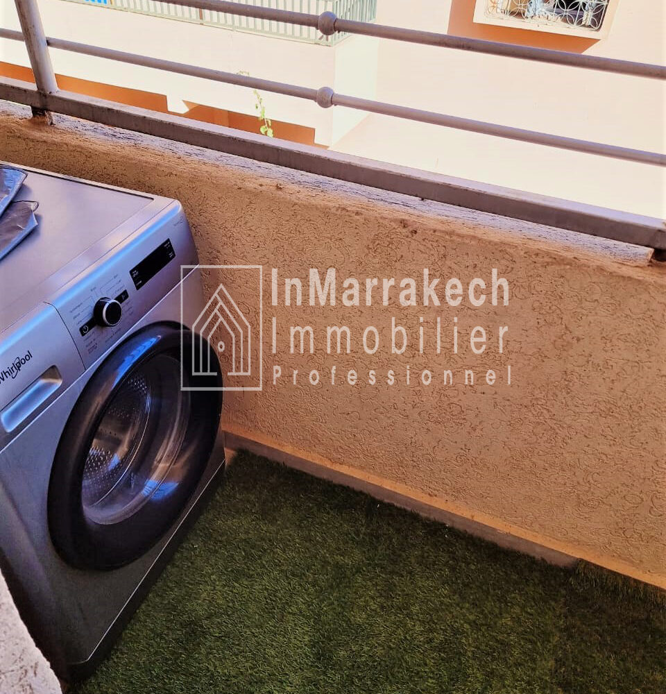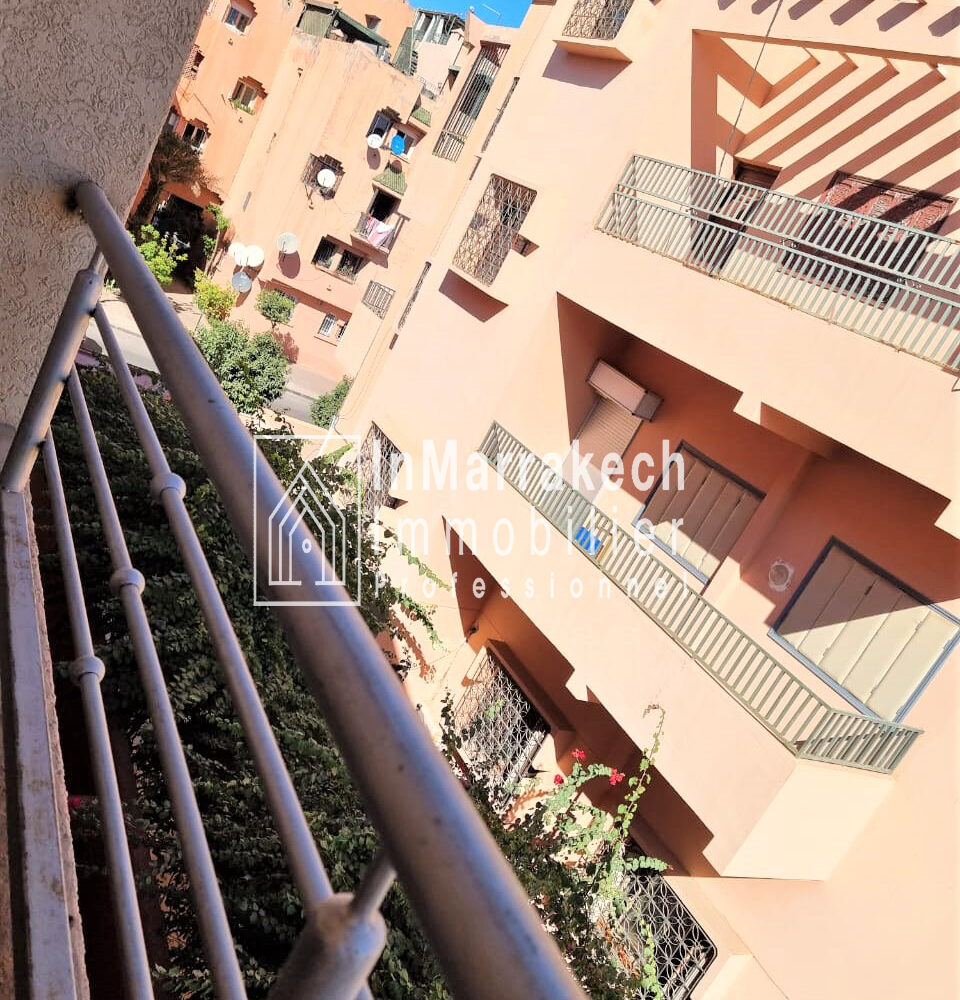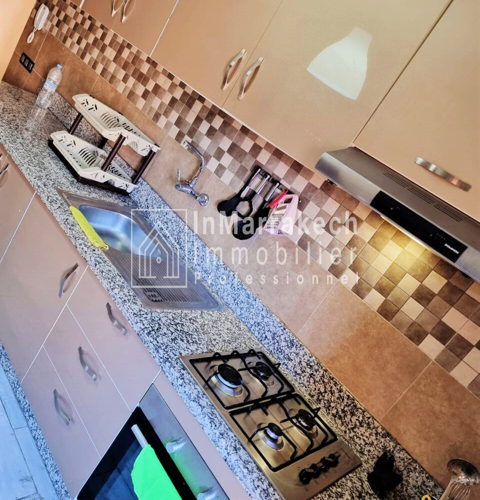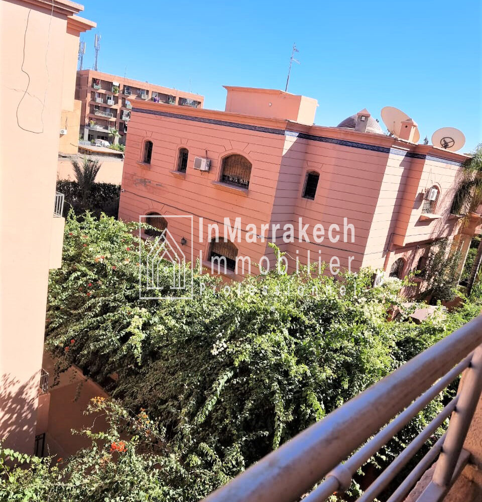 Inmarrakech immobilier vous propose pour la location longue durée un joli appartement meublé d’une superficie de 95 m² situé au deuxième   étage, dans une résidence bien sécurisée et tré  calme à Allal Al Fassi .