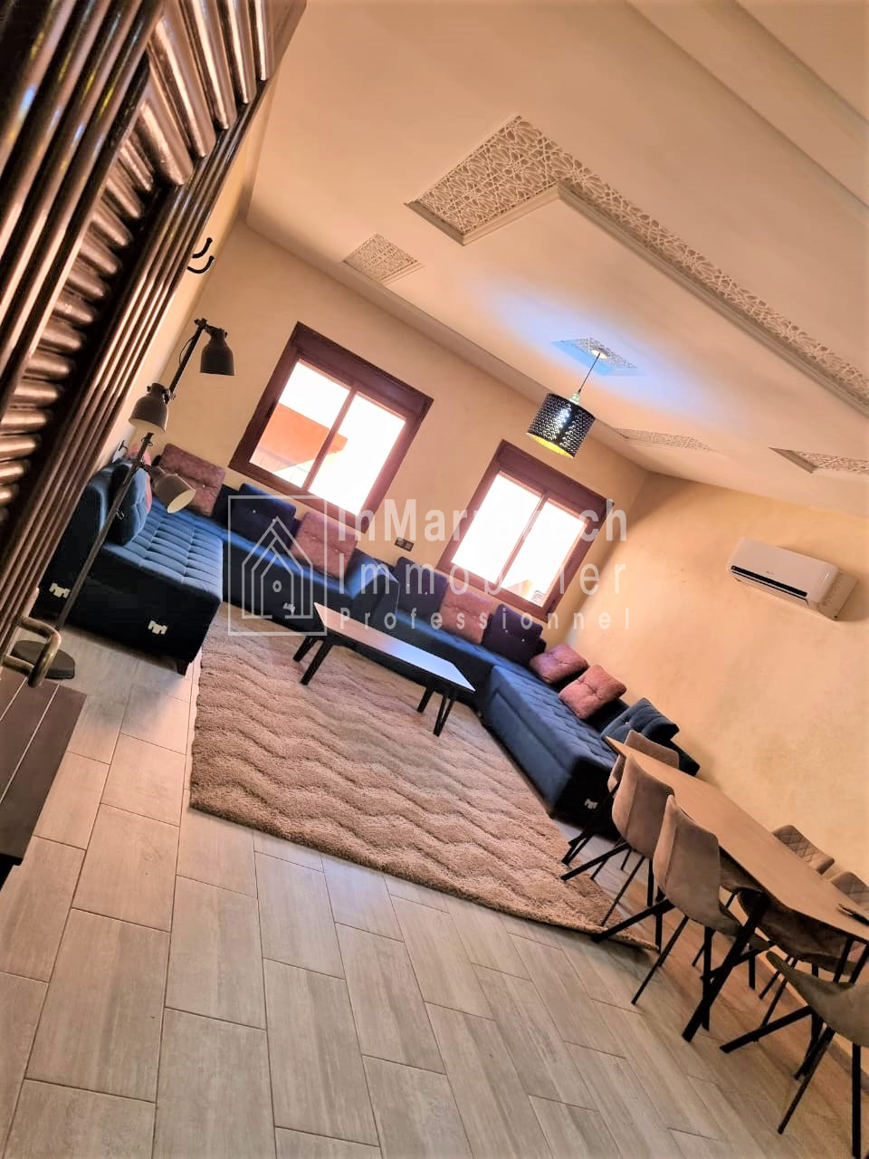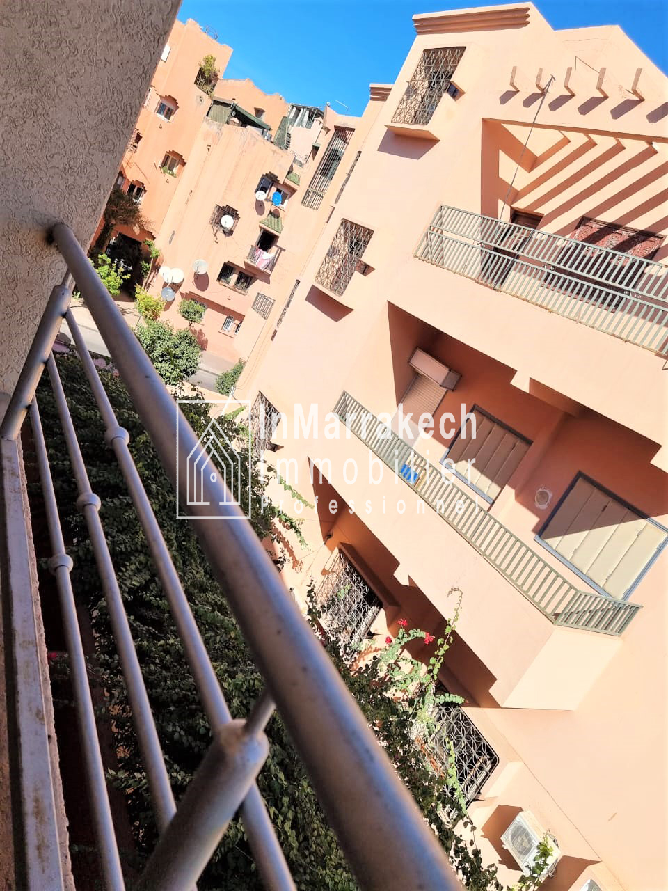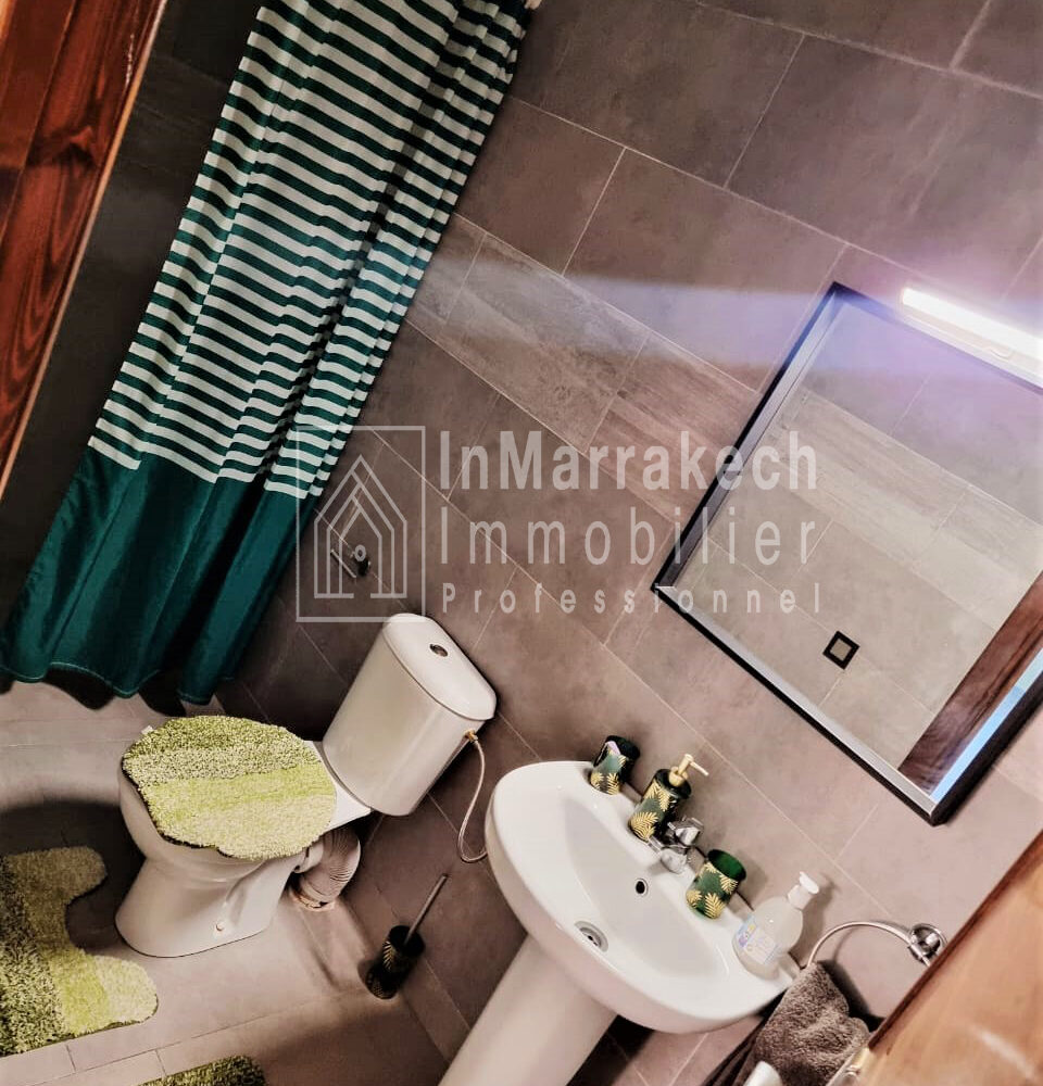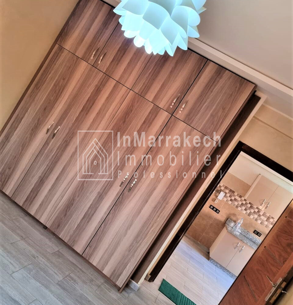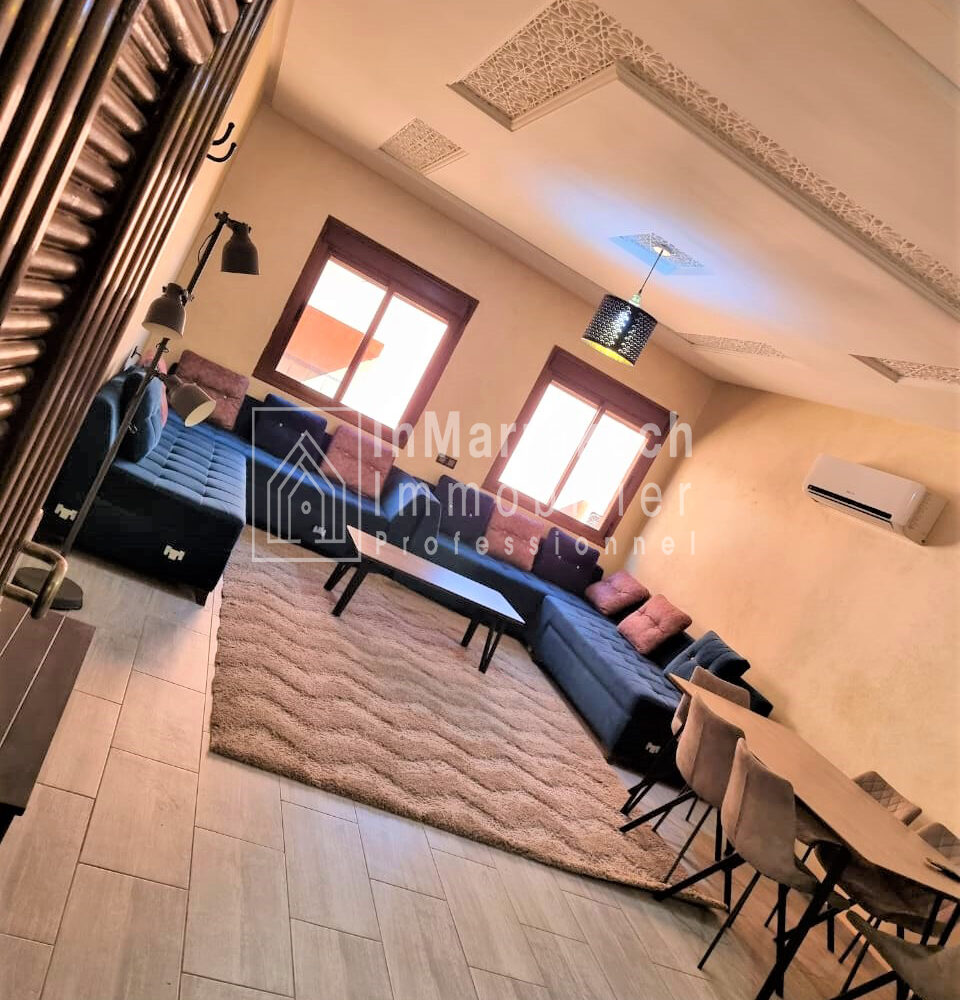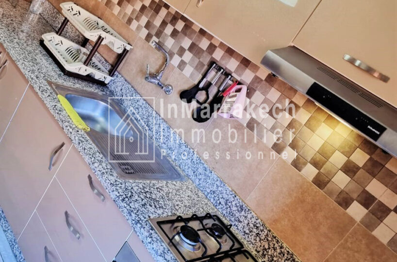 Inmarrakech immobilier vous propose pour la location longue durée un joli appartement meublé d’une superficie de 95 m² situé au deuxième   étage, dans une résidence bien sécurisée et tré  calme à Allal Al Fassi .