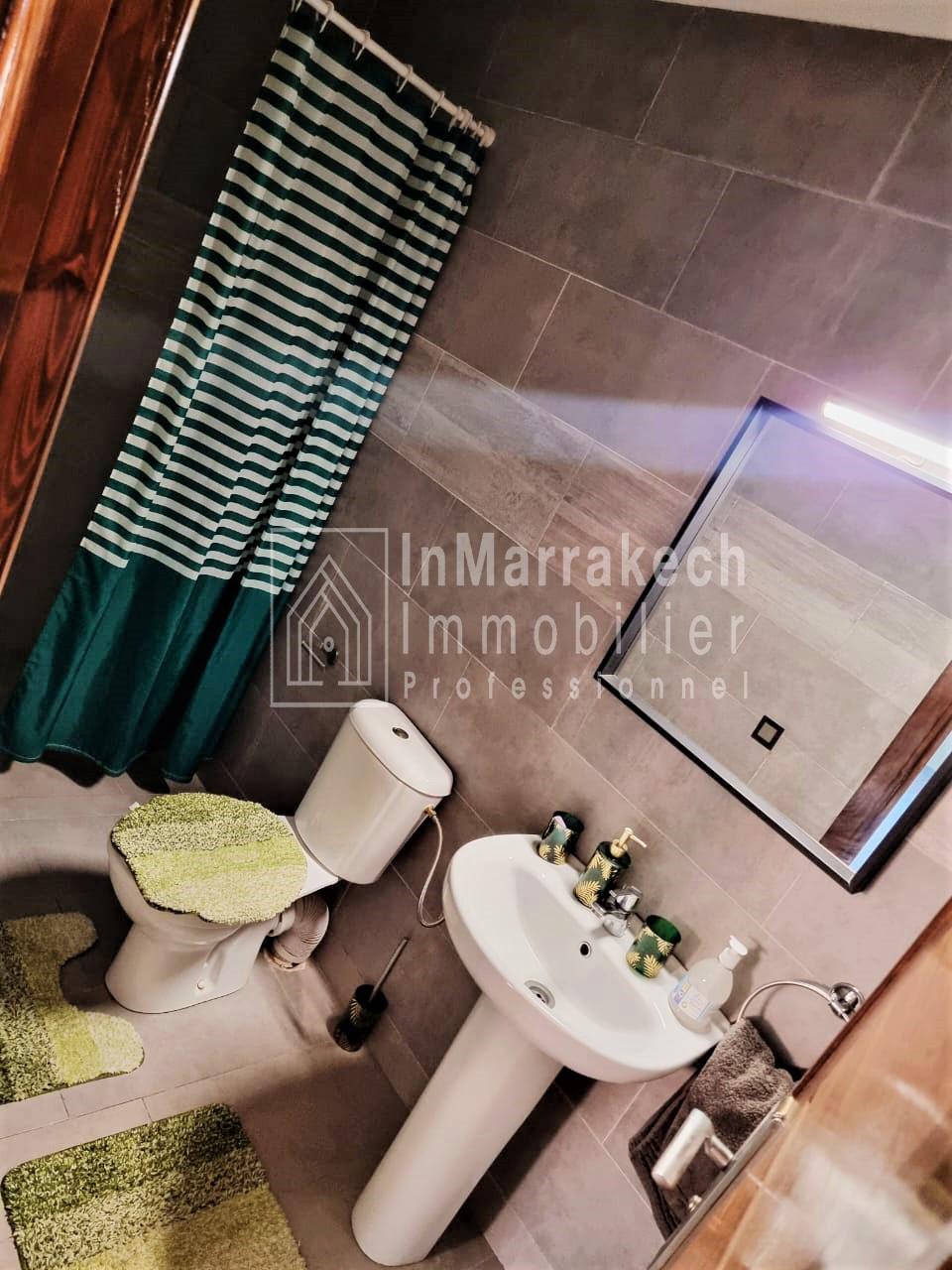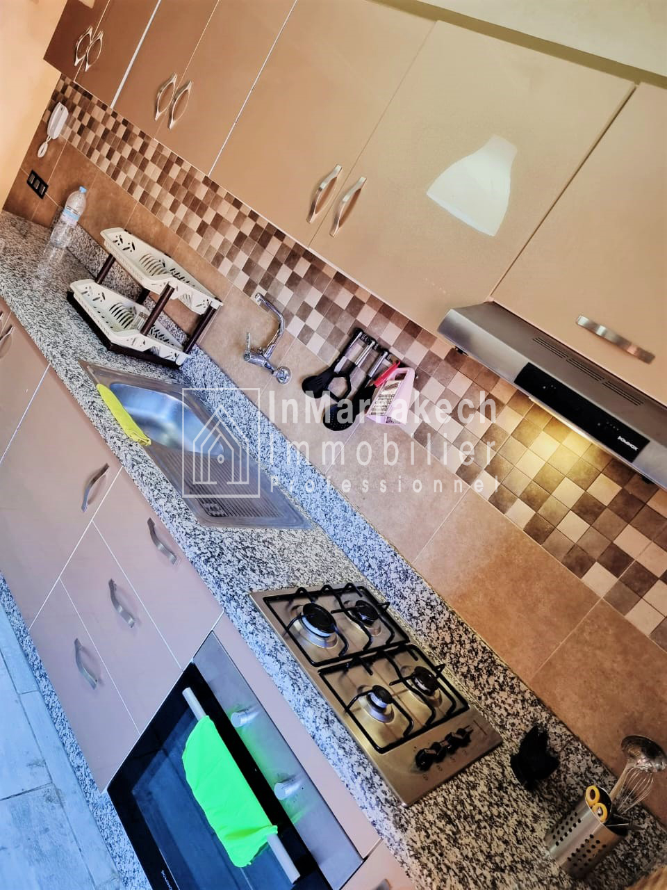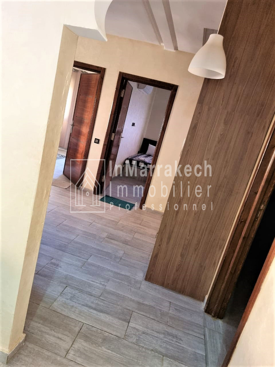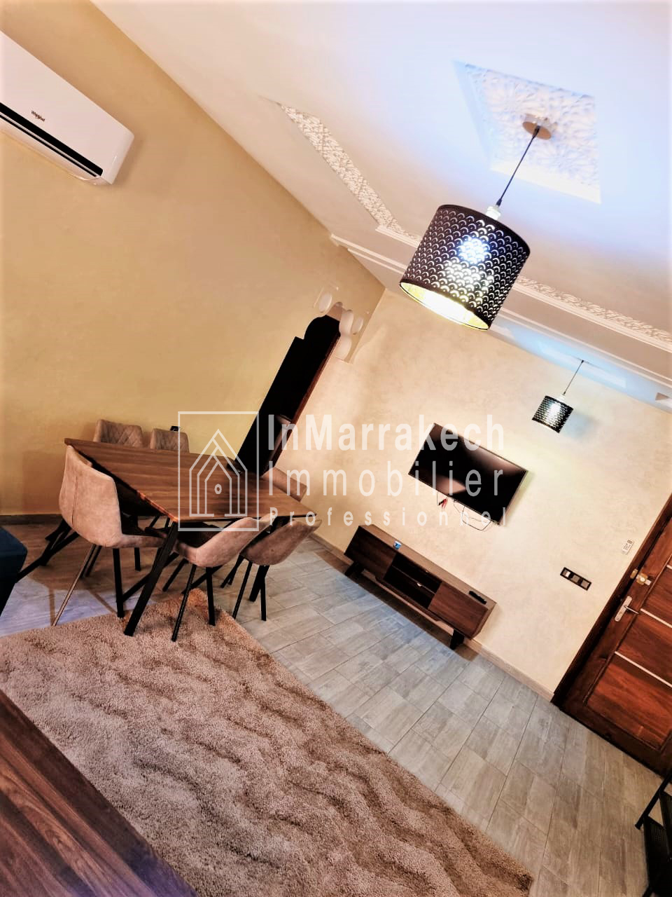 Inmarrakech immobilier vous propose pour la location longue durée un joli appartement meublé d’une superficie de 95 m² situé au deuxième   étage, dans une résidence bien sécurisée et tré  calme à Allal Al Fassi .