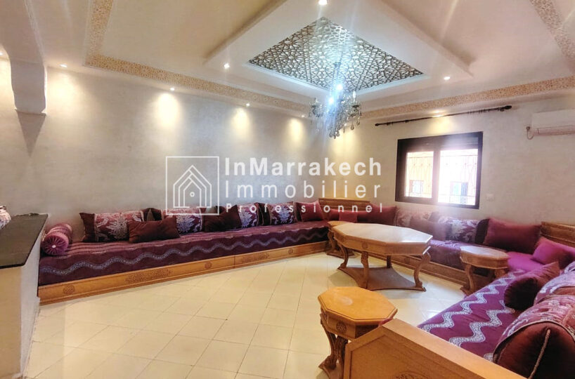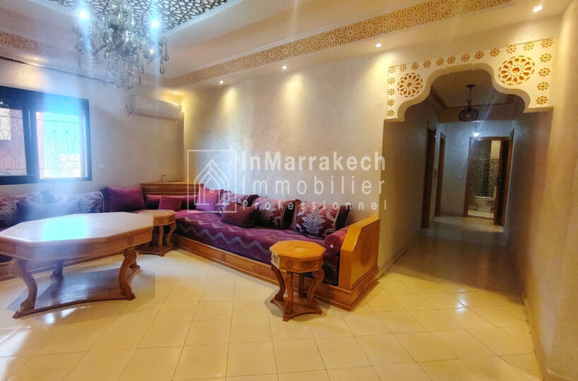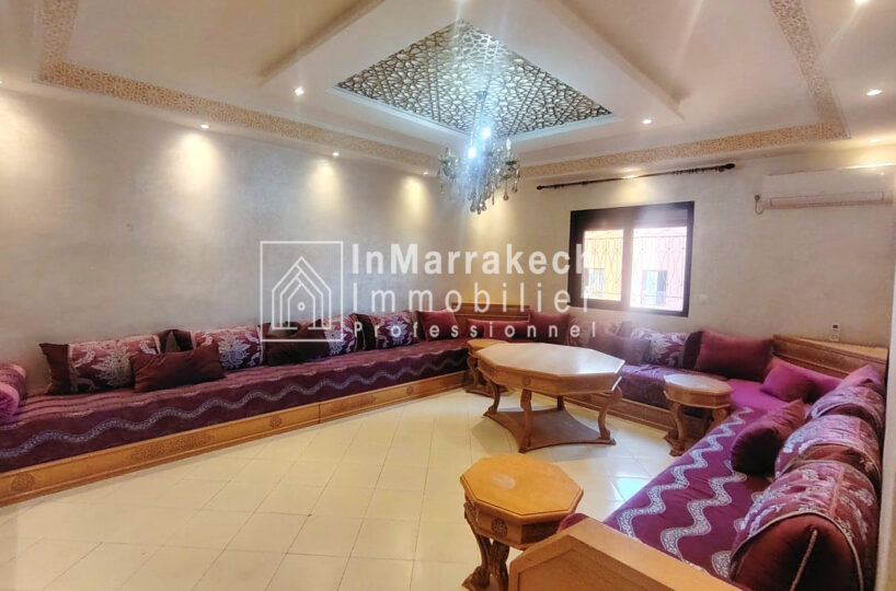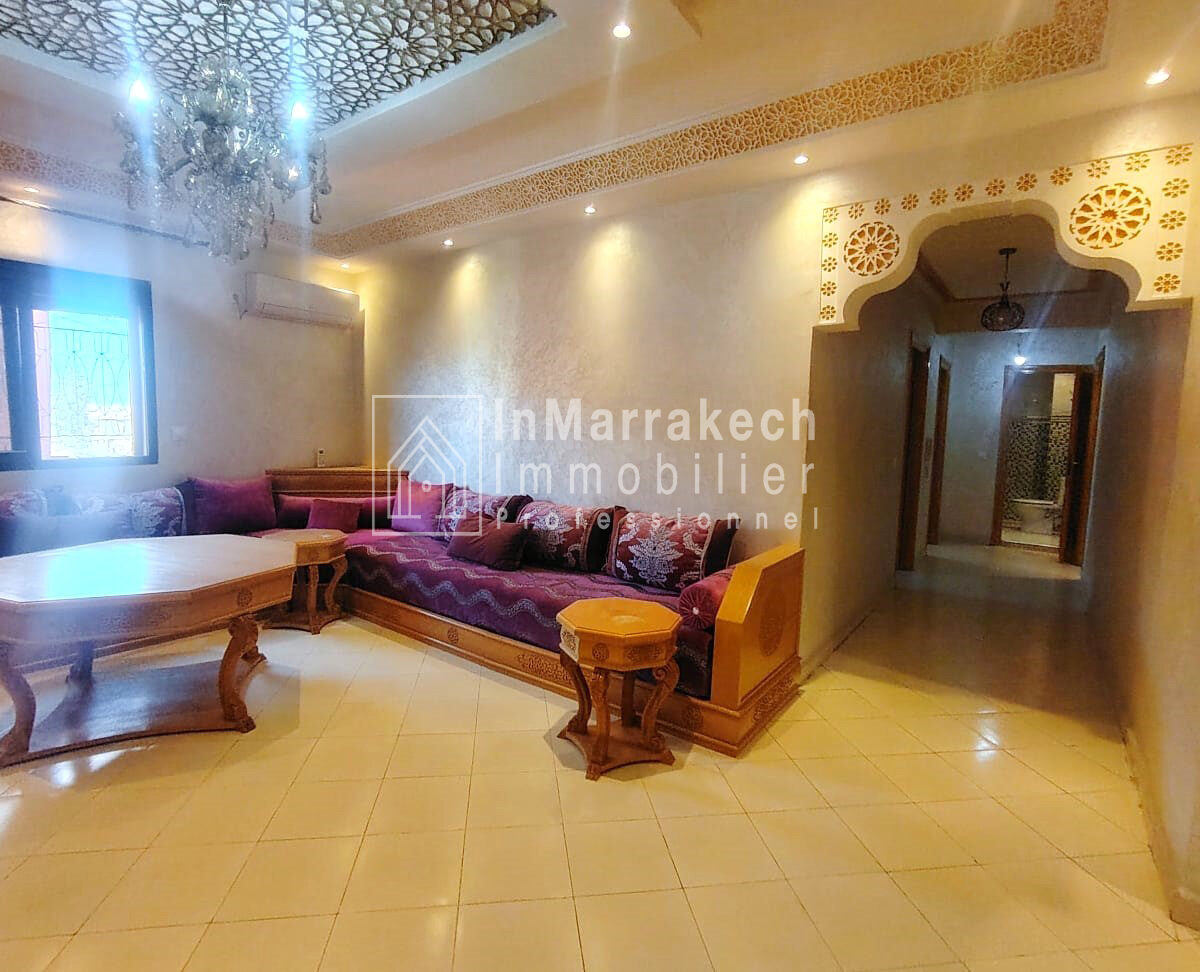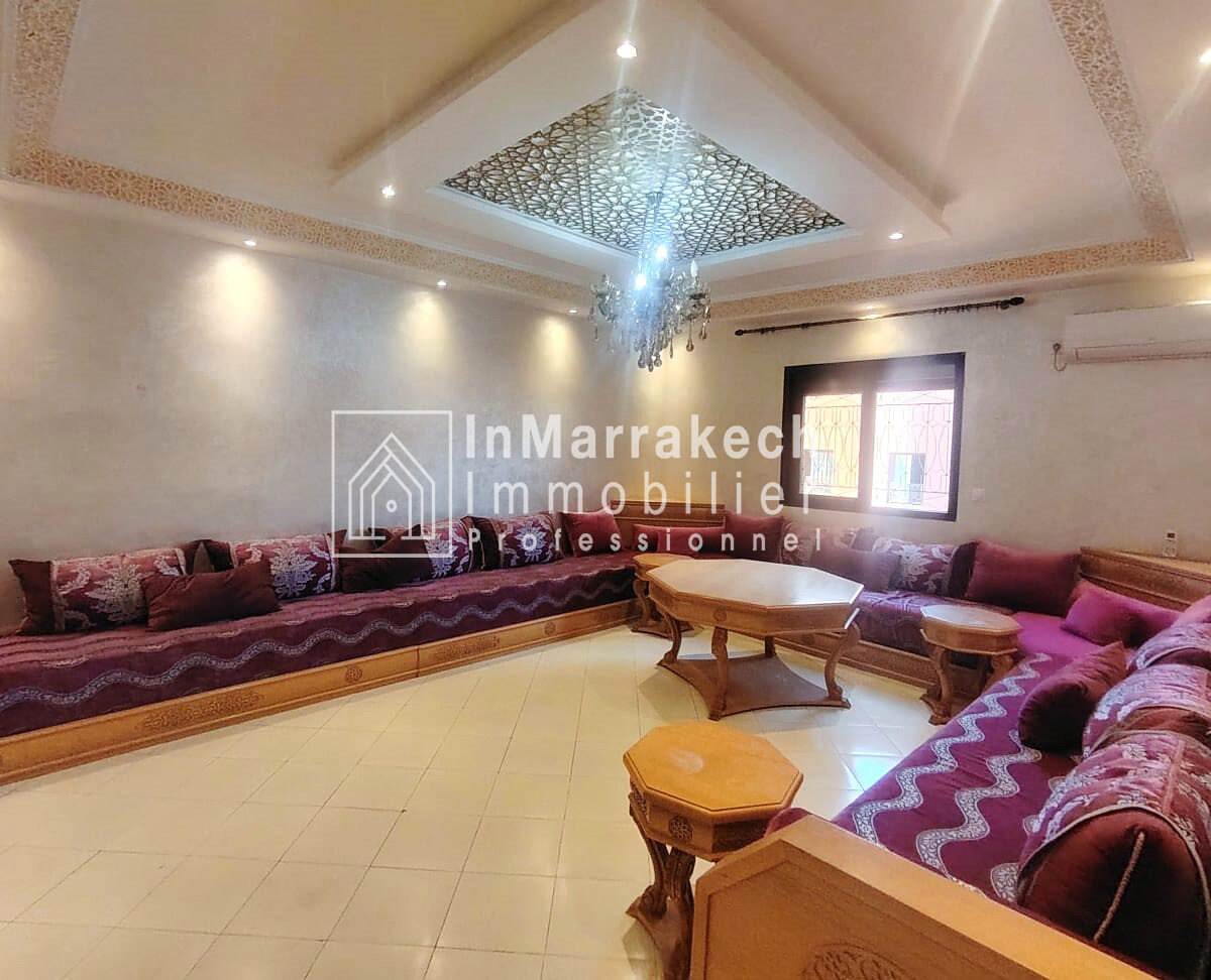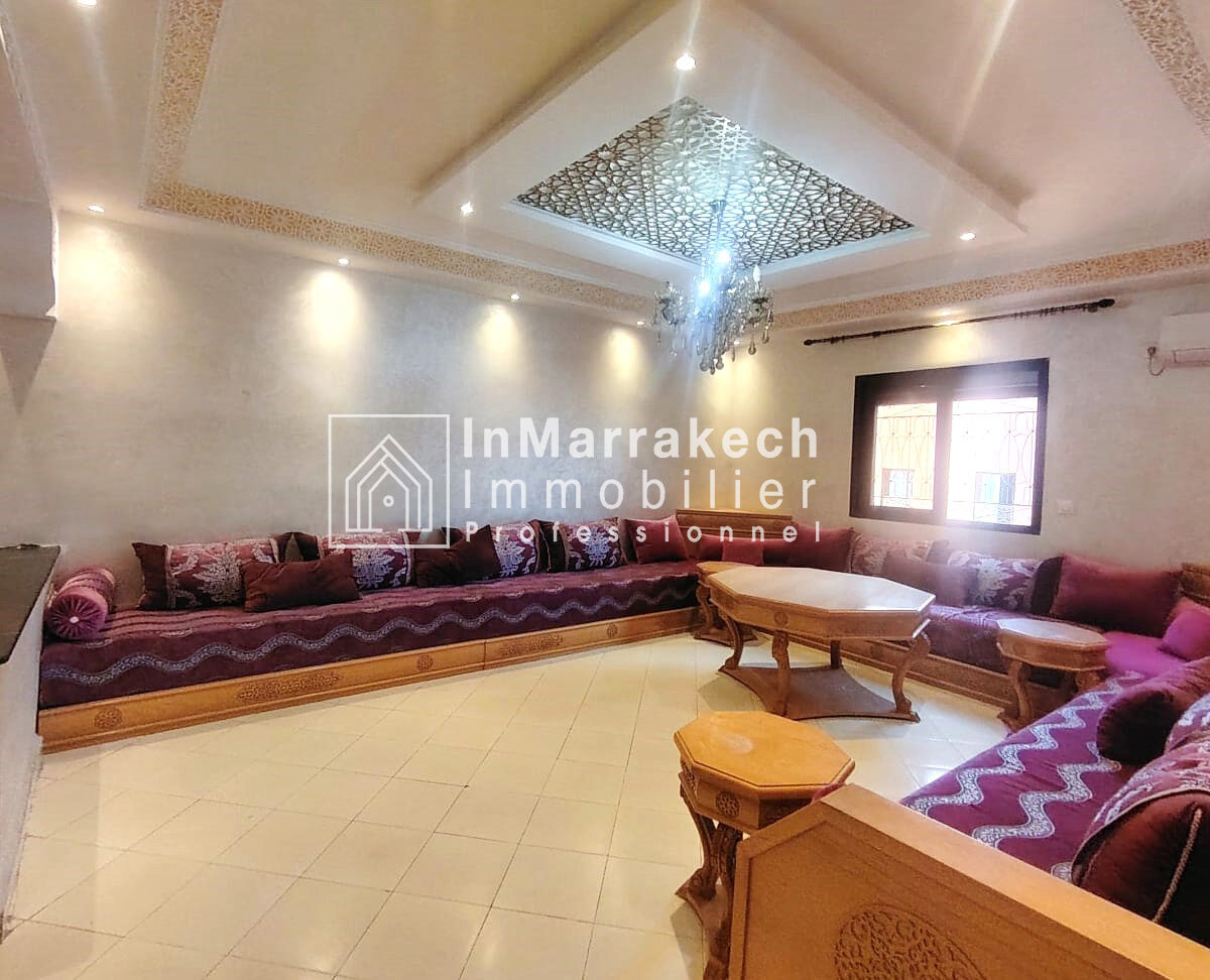 Inmarrakechimmo.com vous propose à la location un joli appartement meublé, situé au 3ᵉ étage dans le quartier Samlalia, Marrakech.