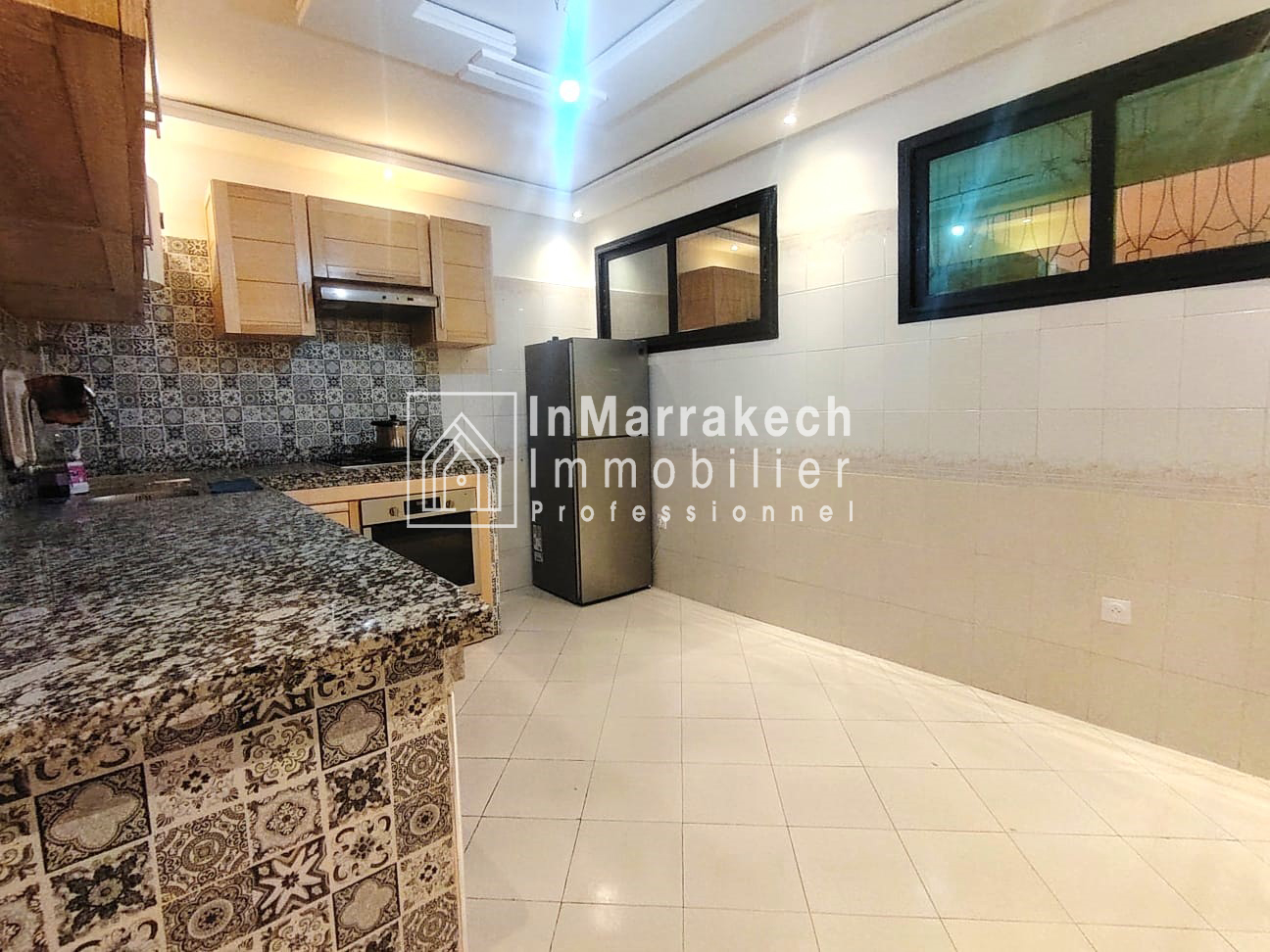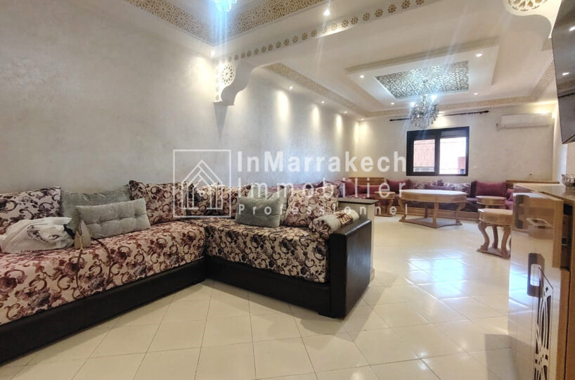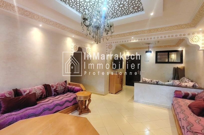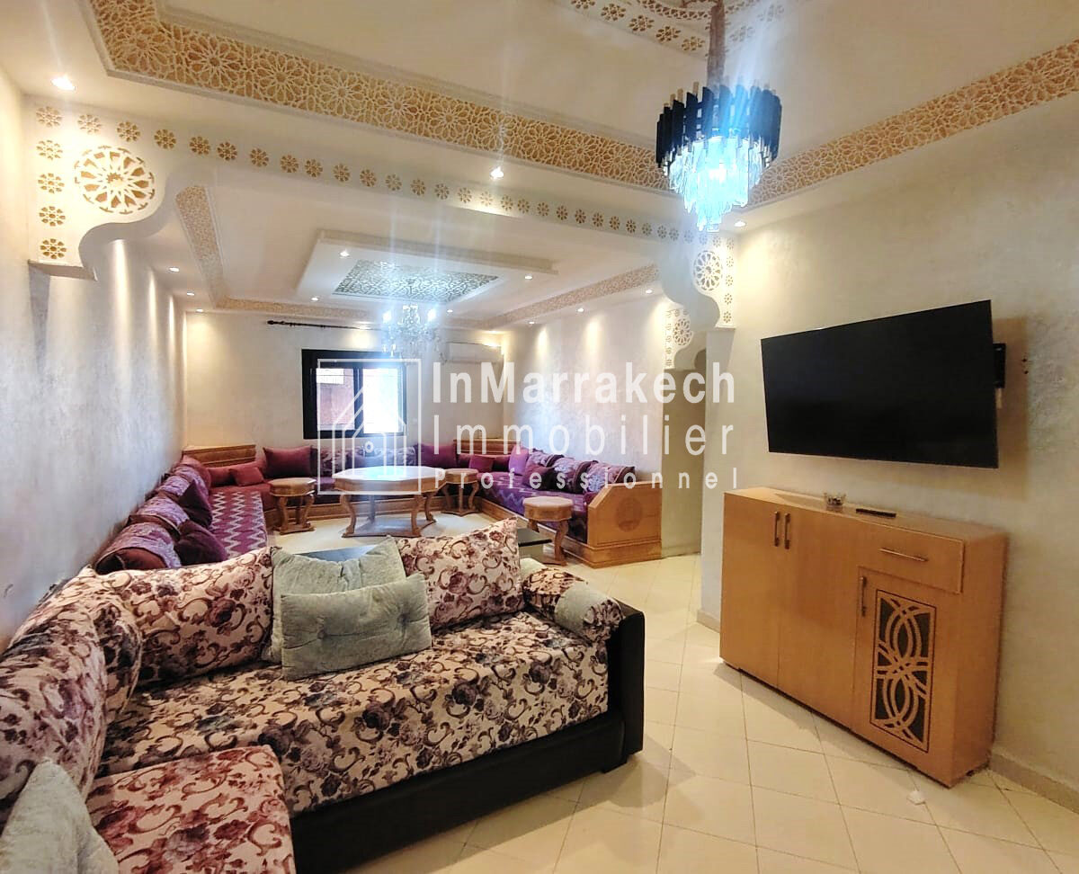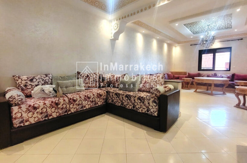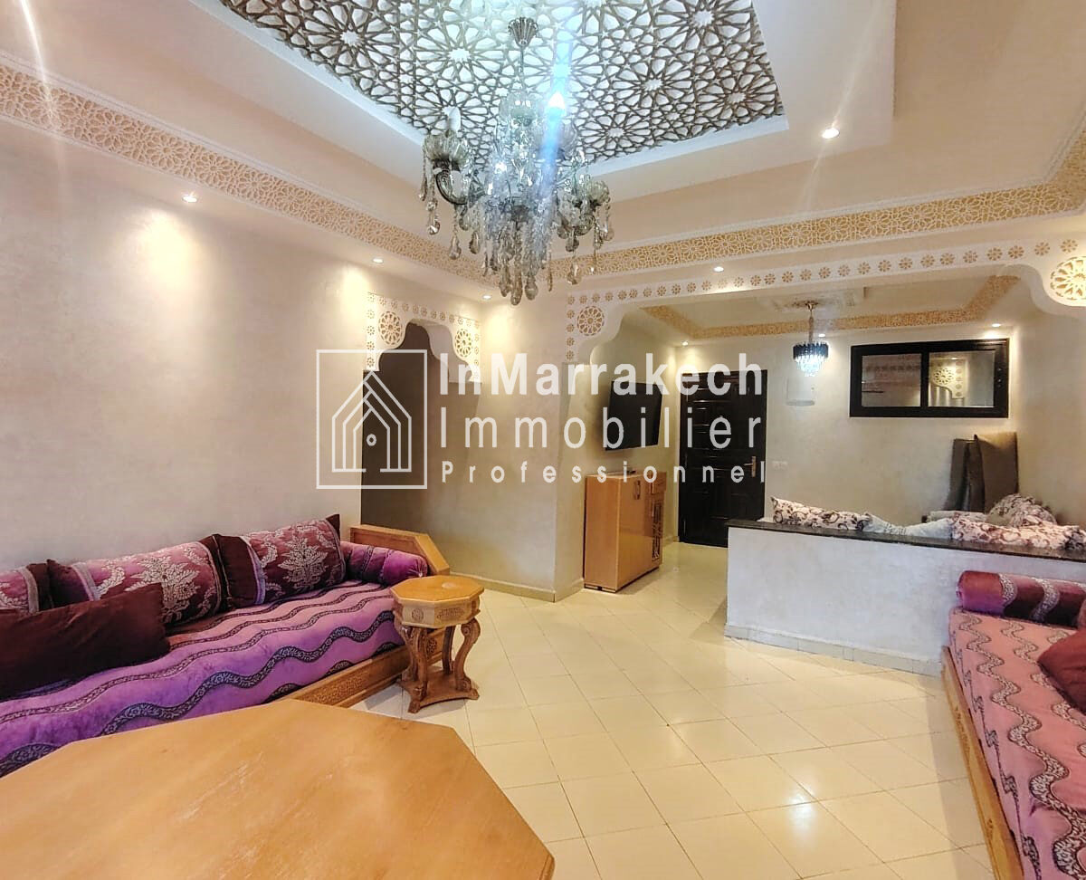 Inmarrakechimmo.com vous propose à la location un joli appartement meublé, situé au 3ᵉ étage dans le quartier Samlalia, Marrakech.