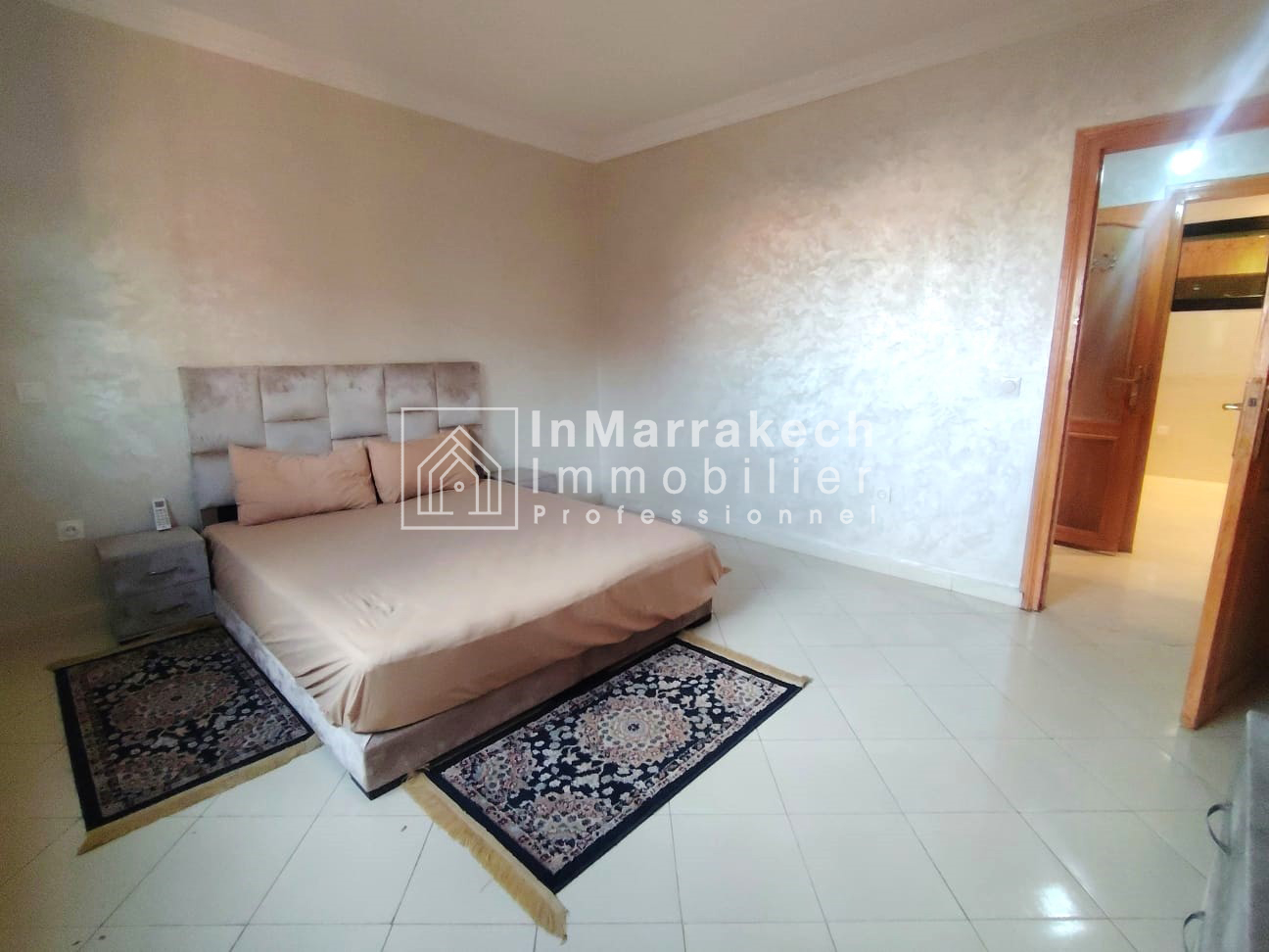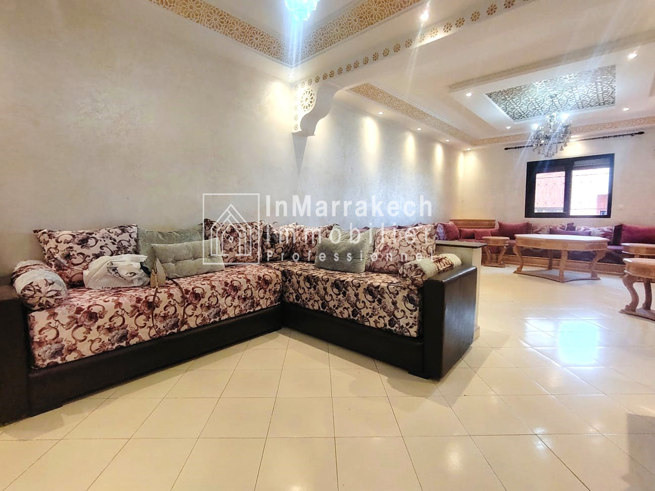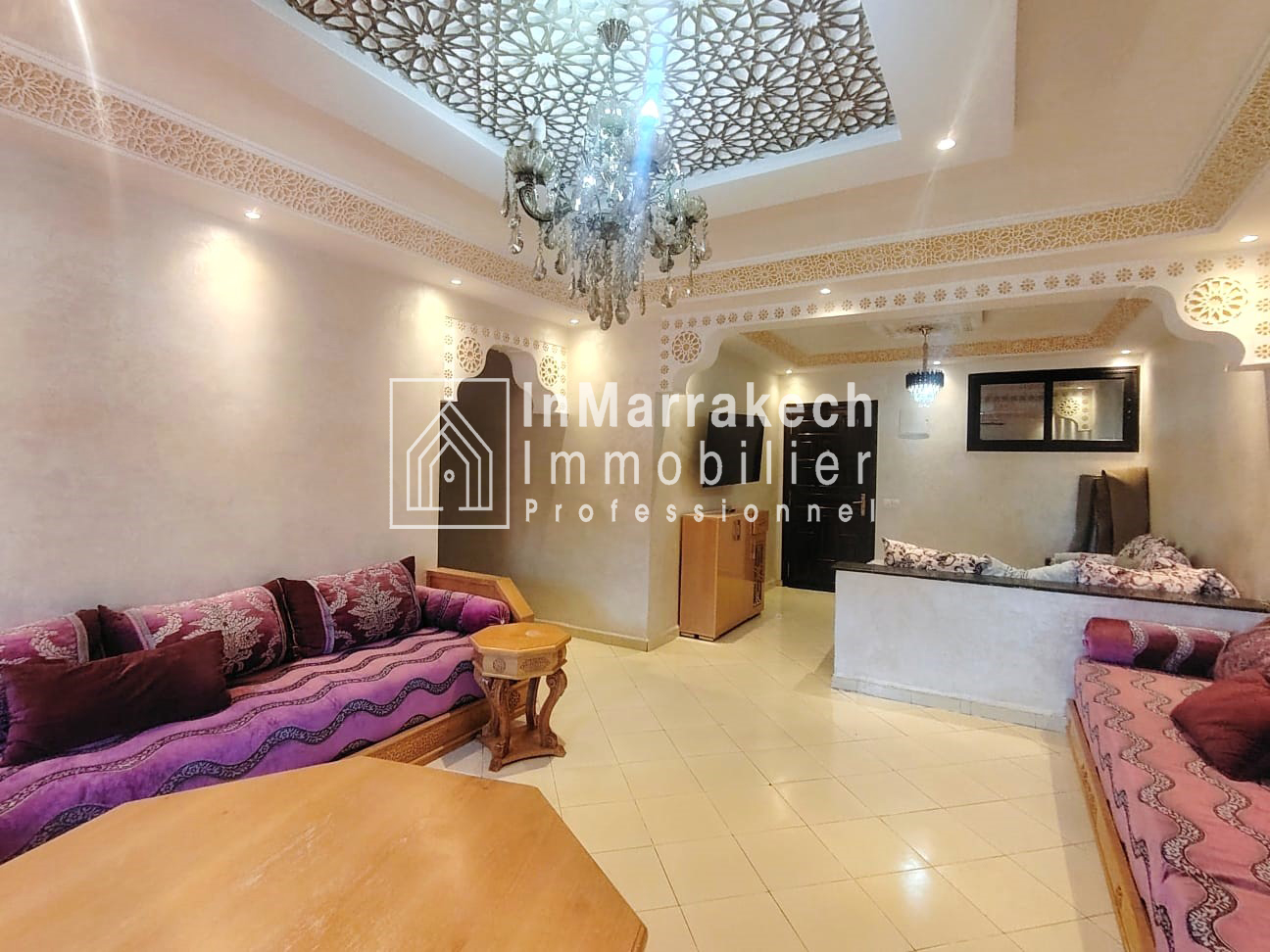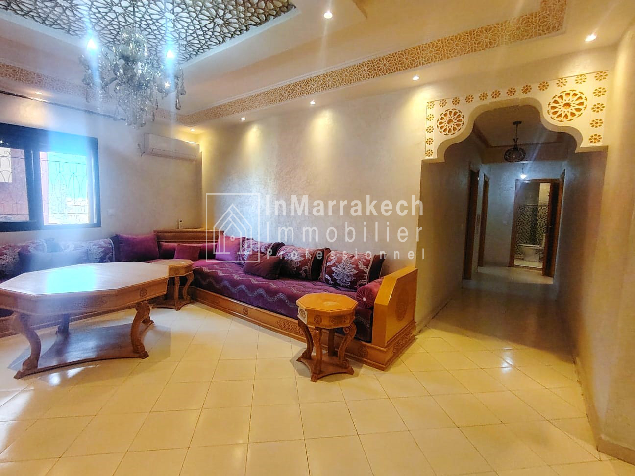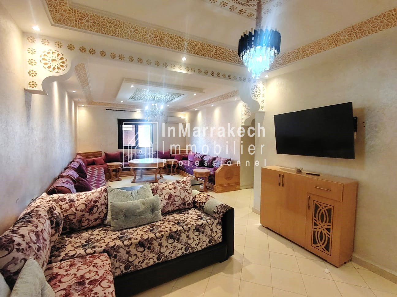 Inmarrakechimmo.com vous propose à la location un joli appartement meublé, situé au 3ᵉ étage dans le quartier Samlalia, Marrakech.