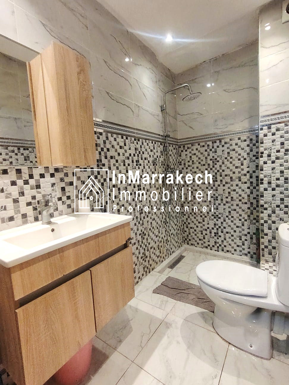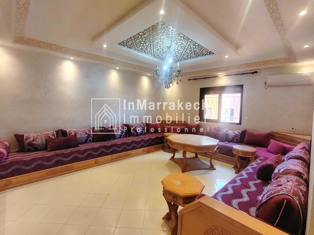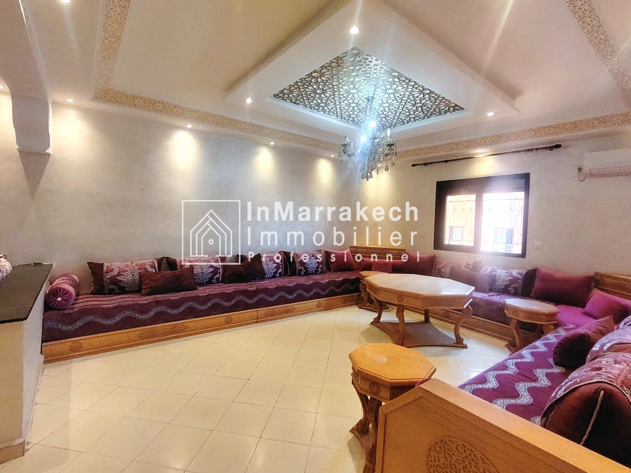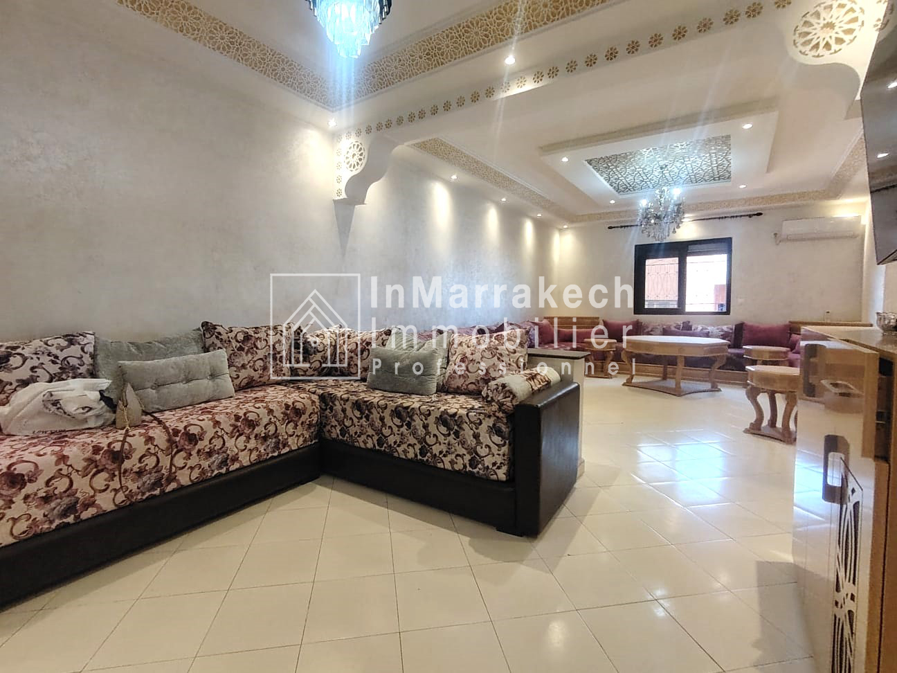 Inmarrakechimmo.com vous propose à la location un joli appartement meublé, situé au 3ᵉ étage dans le quartier Samlalia, Marrakech.